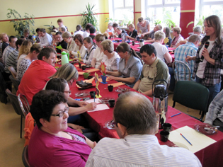 24 maja na godzinę 14tą zaprosiliśmy nasze mamy by wspólnie obchodzić uroczystość Dnia Matki. Na ten szczególny dzień postanowiliśmy samodzielnie przygotować poczęstunek, a przez kilkanaście dni z wielkim zaangażowaniem przygotowywaliśmy program artystyczny i drobne upominki. Trema przed występem była ogromna, jednak widok naszych mam dodawał nam otuchy, zaś ich uśmiechy mobilizowały nas do jak najlepszego zaprezentowania się. Oklaski po zaśpiewaniu ostatniej piosenki, uświadomiły nam, jak wielkie znaczenie ma dla nas sprawienie radości naszym najbliższym. Po pokazie artystycznym nasze mamy czekała kolejna porcja niespodzianek. Każda otrzymała wykonany samodzielnie przez nas niezwykły drewniany kwiatek. Dlaczego był on taki niezwykły, wiedzą pewnie wszystkie nasze mamy. Następnie wspólnie wykonaliśmy ogromny kwiat z odrysowanych na kolorowej kartce i wyciętych naszych dłoni. Mogliśmy pochwalić się również naszym talentem malarskim, dzięki któremu uwieczniliśmy twarze naszych mam na balonie. Całość spotkania zwieńczył wspólny taniec Shalom.