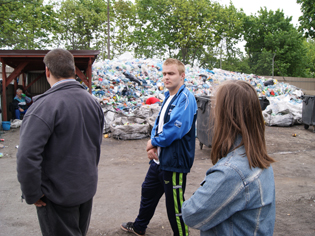 W warsztacie staramy się aby wszystkie odpady zostały skrupulatnie przesortowane i wrzucone do odpowiednich pojemników, tj. PET, MAKULATURA, SZKŁO. Śmieci biodegradowalne trafiają do kompostownika. W związku z zaangażowaniem uczestników w dbanie o środowisko postanowiliśmy poprosić Miejski Zakład Usług Komunalnych o oprowadzenie nas po ich zakładzie i pokazaniu nam jak to wszystko wygląda „od kuchni”. Tak, więc 16 maja w prawie wszyscy udaliśmy się tam na krótką prezentację. W jej czasie dowiedzieliśmy się jak wszystkie odpady są przetwarzane i gdzie dalej wysyłane. Zobaczyliśmy między innymi halę w której następuje segregacja plastiku, belownice do plastiku, halę z zużytym sprzętem RTV oraz hałdy piasku który zostanie wykorzystany podczas zimy.