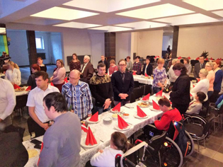 Tym razem nasze spotkanie wigilijne odbyło się w nowo otwartym klubie "WIR". Oczywiście jak co roku od kilku lat jego organizatorem był właściciel Restauracji "Millenium" Michał Wawrzyniak. Na początku wszystkim serdeczne życzenia złożyli Burmistrz Miasta Złotowa Adam Pulit, Dyrektor PCPR w Złotowie Halina Agatowska i Kierownik WTZ w Złotowie Dorota Staszewska. Został również odczytany fragment ewangelii Św. Łukasza, po którym wszyscy obecni przystąpili do dzielenia się opłatkiem, składając sobie serdeczne życzenia świąteczne. Następnie obejrzeliśmy przygotowany przez pracownię artystyczną film "Nasza Opowieść Wigilijna". Warto dodać iż z zapartym tchem śledziliśmy akcję filmu, a po seansie braw i słów uznania od publiczności nie było końca. Po zakończeniu przedstawienia zasiedliśmy do wspólnego stołu, by raczyć się świątecznymi potrawami.